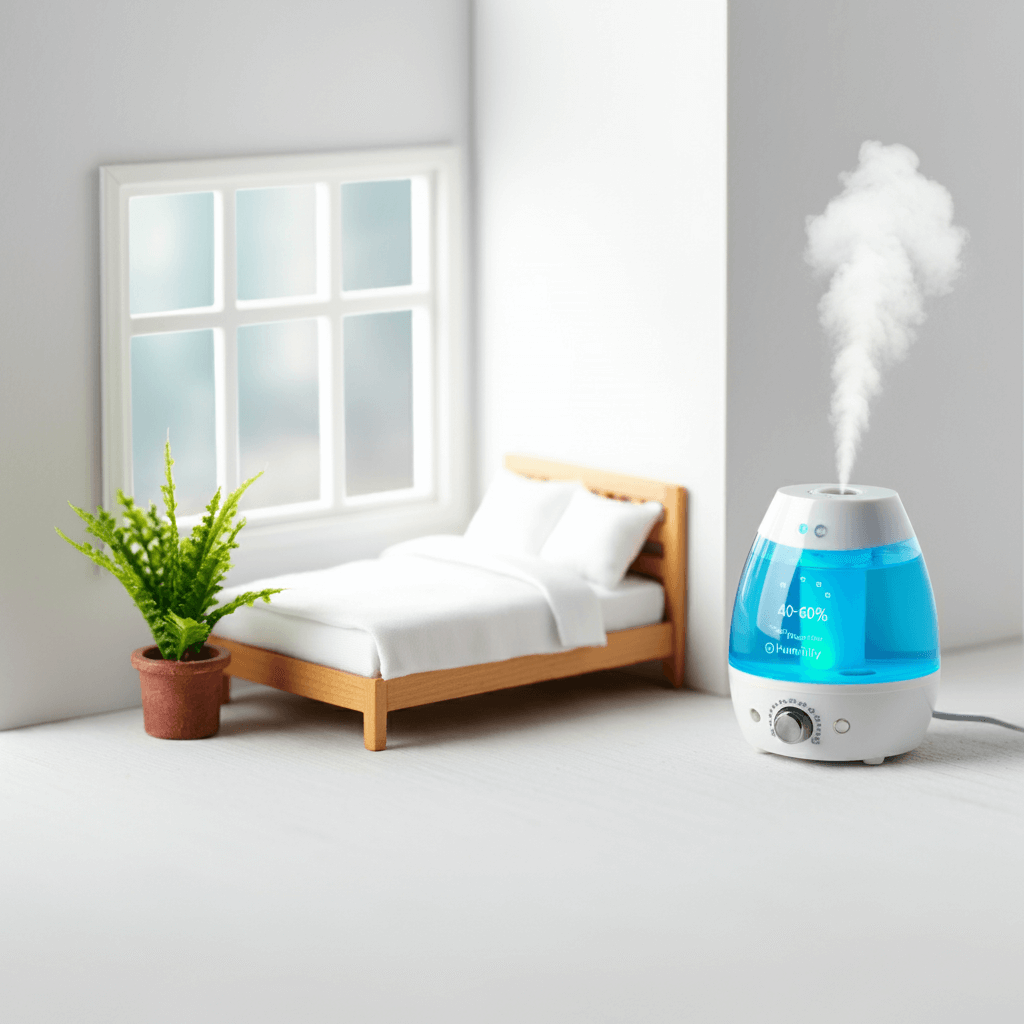 눈의 건조를 방지하기 위해 실내 습도를 40~60%로 유지하세요. 가습기를 사용하는 것도 좋은 방법입니다.