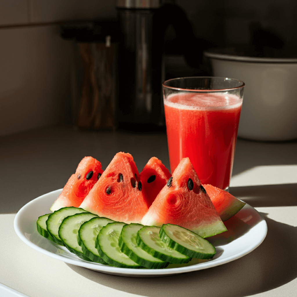 피부건선은 피부가 건조할수록 악화되기 쉽습니다. 오이와 수박 같은 수분 함량이 높은 식품은 체내 수분 공급에 도움을 주고, 피부를 촉촉하게 유지합니다. 이들 음식은 간식으로 섭취하거나 주스로 만들어 마시는 등 다양한 방식으로 활용 가능합니다. 특히 더운 날씨에는 수분을 보충하며 염증을 줄이는 데 탁월합니다.